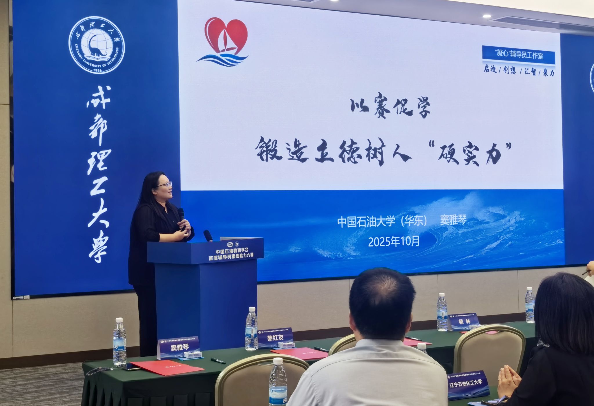 决赛现场,来自全国15所石油类院校的27名选手同台竞技。决赛设有“学情分析”与“案例研讨”两个环节。学情分析环节重点考察辅导员对数据信息的分析与运用能力,要求选手依据给定材料,快速提炼关键问题、深入剖析原因、提出对策,并撰写分析报告。案例研讨环节聚焦当前教育中的现实情境,围绕思政引领、学风建设、心理疏导、职业规划、危机应对等主题,通过交互式提问与回答,综合评估选手分析、研判及解决问题的能力。大赛期间同步举办辅导员赋能论坛,化学化工学院辅导员、“凝心”辅导员工作室主持人窦雅琴应邀作主题报告,聚焦辅导员业务能力提升和职业发展,分享“以赛促研、以赛促教”的实践经验。