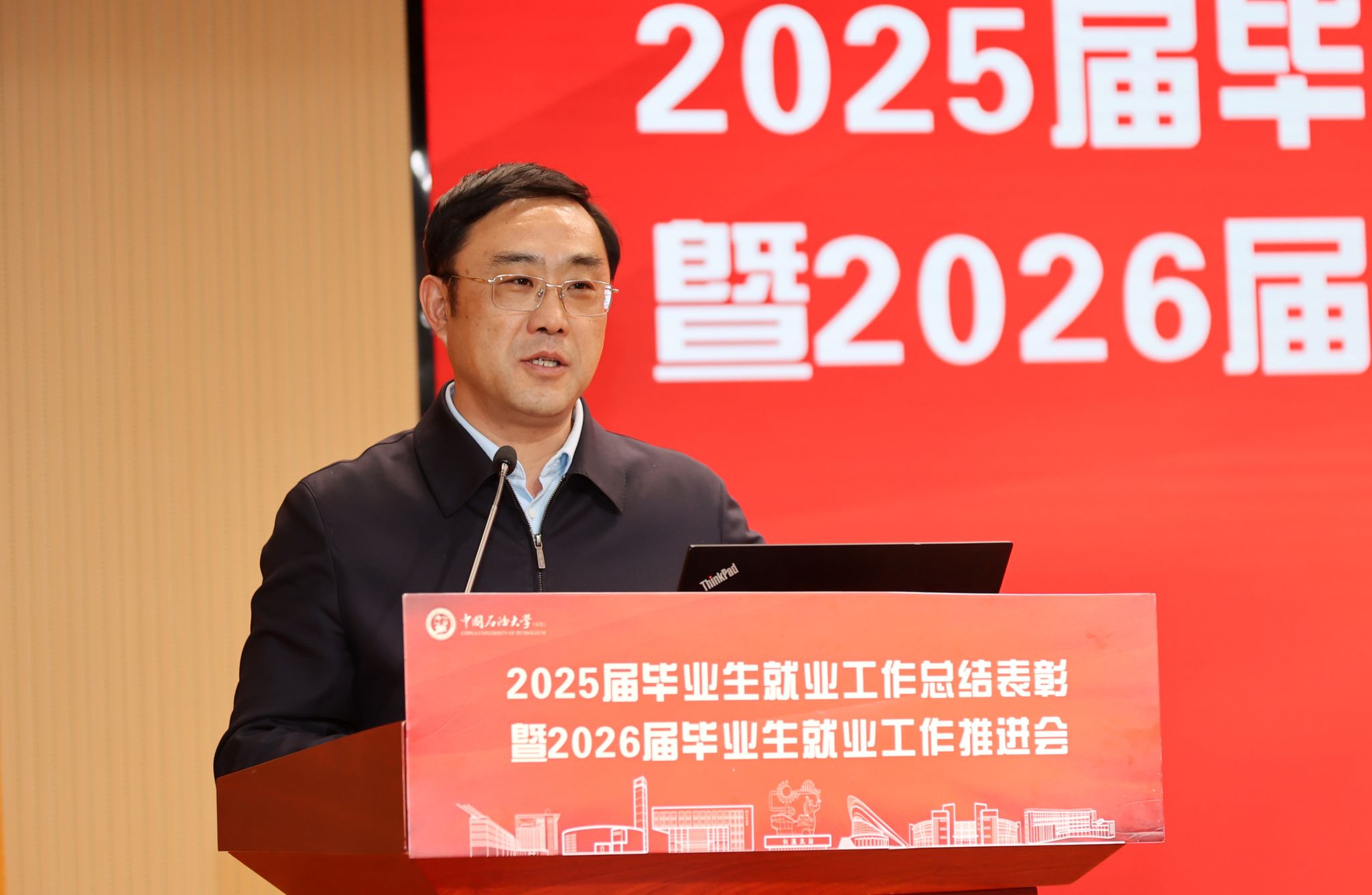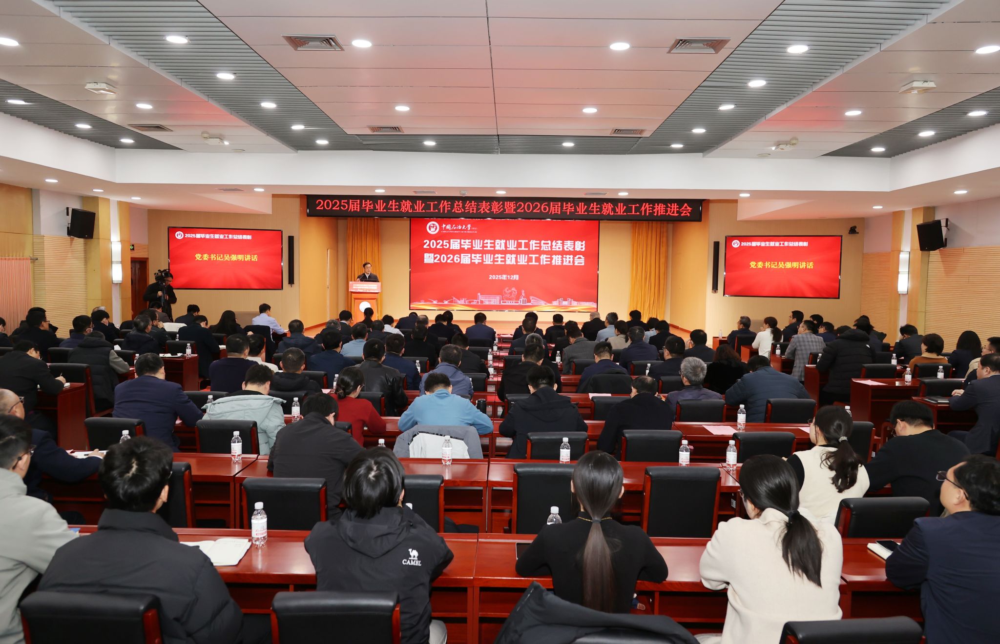 化学化工学院辅导员窦雅琴代表就业工作先进个人发言,分享辅导员做好学生生涯教育的工作体会。石大山能新能源学院电气工程系党支部书记孟庆伟代表就业工作先进集体发言,分享专业系在科研赋能、校企协同促就业中的有益做法。石油工程学院院长侯健代表先进单位发言,分享学院扎根石油行业、深耕能源主战场,多维度赋能毕业生实现高质量就业的典型经验。