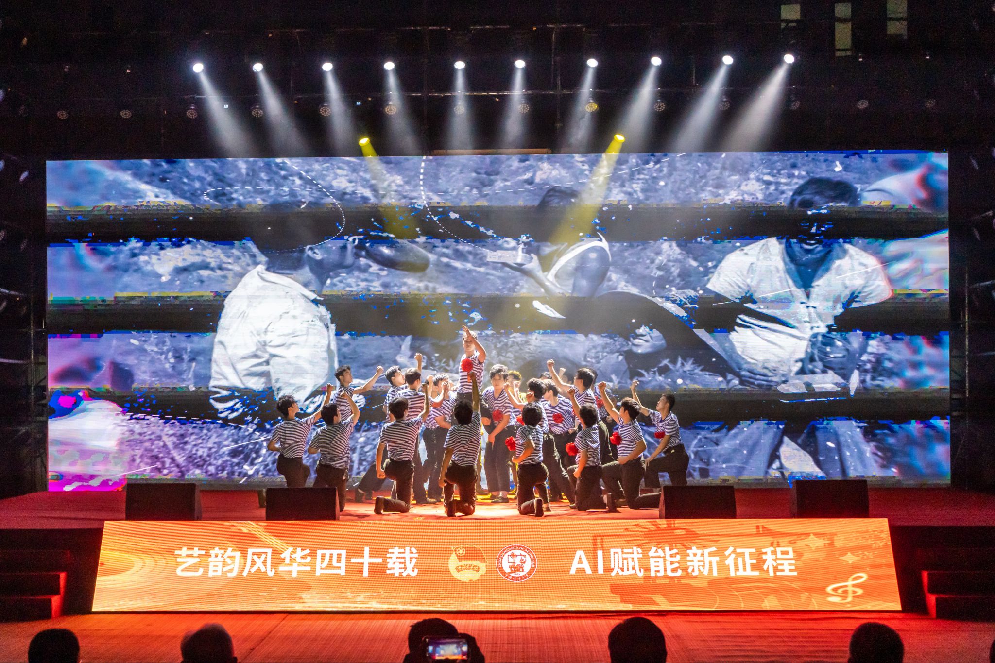 第三篇章“智启新程·艺向未来”聚焦传统与现代、AI科技与舞台艺术的新潮碰撞。器乐合奏《国潮》奏响了传统艺术在当代的蓬勃生命力;舞蹈《深地长歌》生动再现团队协作攻克深地难题的场景,彰显科技赋能下的创新活力;原创主题歌曲《荣光》以深情的旋律和铿锵歌词,礼赞“干惊天动地事,做隐姓埋名人”的科学家精神。