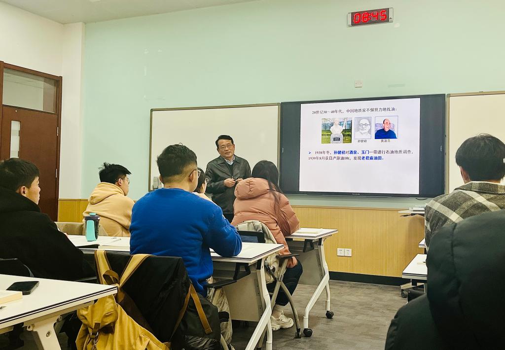 地球科学与技术学院蒋有录教授为学生讲授《油气地质与勘探》。