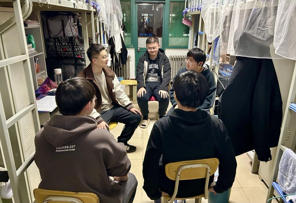材料科学与工程学院辅导员刘林深入学生宿舍,与学生交流生活学业情况。