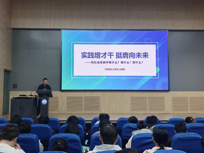 报告伊始,王鹏翔老师以“实践增才干,挺膺向未来——在社会实践中看什么?做什么?想什么?”为主题,为同学们带来了一场内容丰富、启发性强的专题讲座。他首先带领学员们重温了习近平总书记对广大青年的殷切期望——“用脚步丈量祖国大地,用眼睛发现中国精神,用耳朵倾听人民呼声,用内心感应时代脉搏”,强调了社会实践是青年学子深入社会、了解国情、锻炼能力的重要途径。