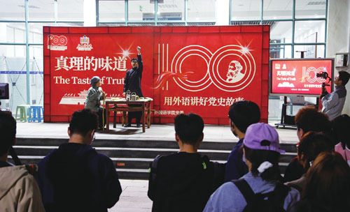 外国语学院党委书记张永宁告诉记者,学院在党史学习教育中,努力做好学习教育与外语的结合,突出外语的特色,增强学习的效果,学习教育与学科专业建设相向而行,通过高质量的党建工作促进学院的高质量发展。学院面向师生开展“用外语讲好党史故事”系列活动,通过微视频征集、演讲比赛、红色经典诵读等形式,用外语讲述党史故事,传播红色经典。学院将党史故事有机融入外语课程教学,与课程思政、一流课程、教学团队建设相融合,提升课程思政的实效。