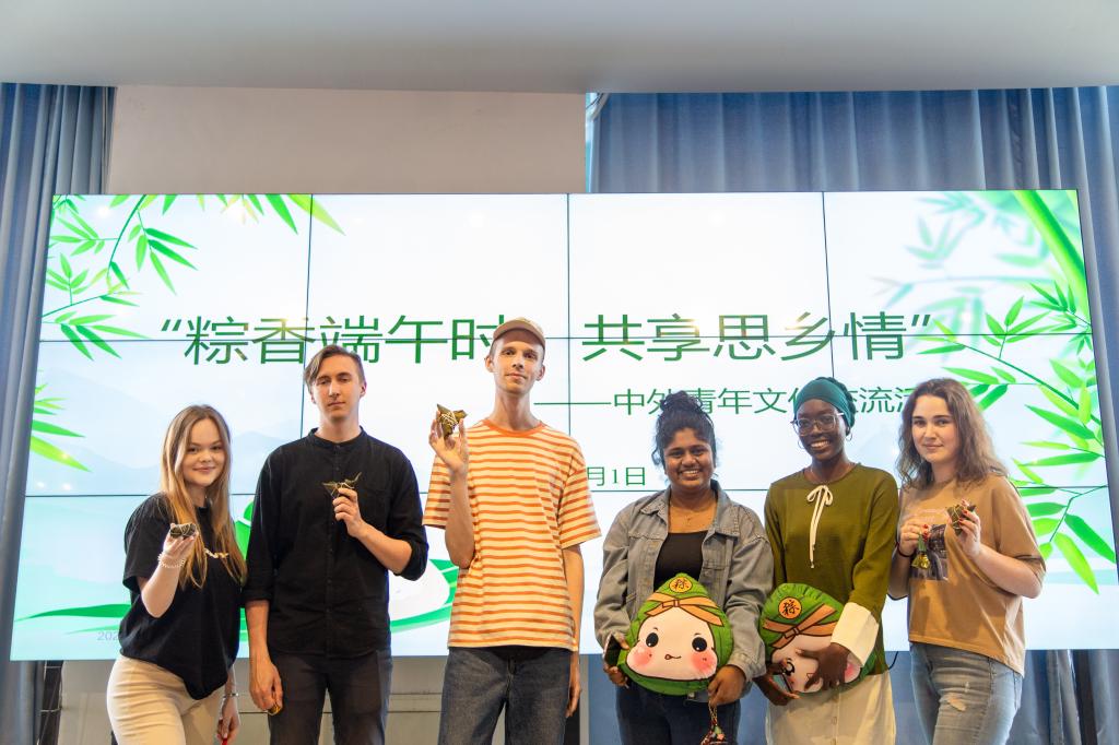 中外青年学生还在后勤工作人员的指导下亲手体验包粽子,感受中华传统文化之美。卷粽叶、放糯米、填红枣……充满仪式感的制作方式让刚果(金)的留学生荣耀难掩自己的兴奋。“这是我第一次品尝粽子,软糯甘甜、香气扑鼻的感觉真是太奇妙了!”来自俄罗斯的留学生丽丽迫不及待地拿出手机记录下自己得到的成果,并在朋友圈分享了自己的快乐,表达远在他乡的思乡之情。