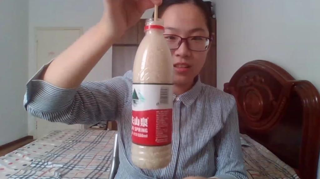 宋妍睿展示“筷子提大米”小实验 陈炎摄影