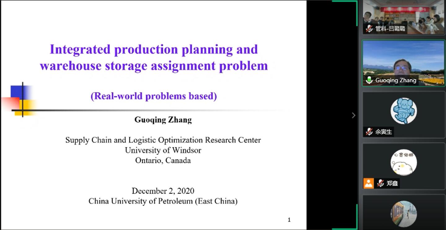 【本站讯】12月2日,加拿大温莎大学张国庆教授应邀做客第46期黄岛商科讲坛,作题为“集成生产计划和仓库储存分配问题:物联网辅助解决方案”的报告。报告依托“腾讯会议”以线上线下相结合的方式进行。