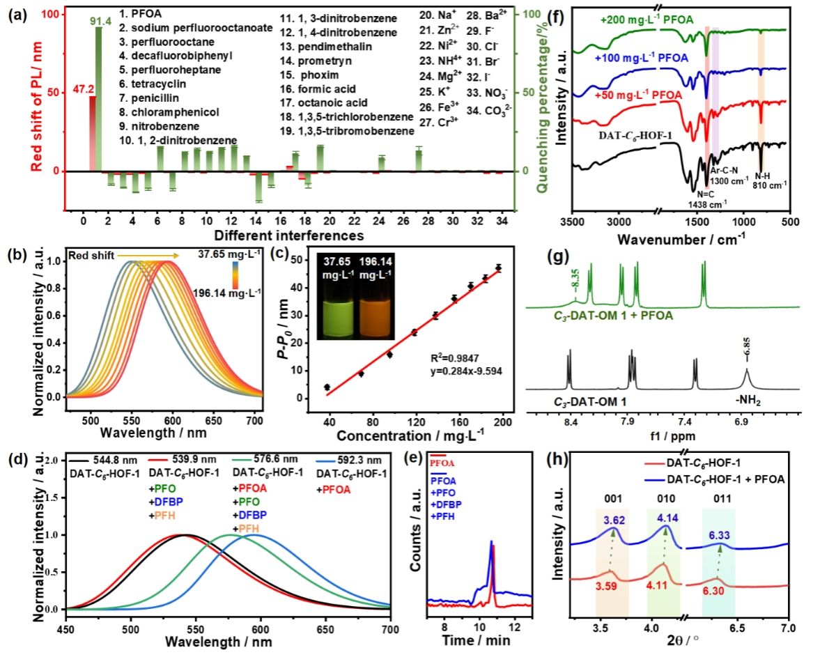 图2.DAT-C6-HOF-1对PFOA检测性能