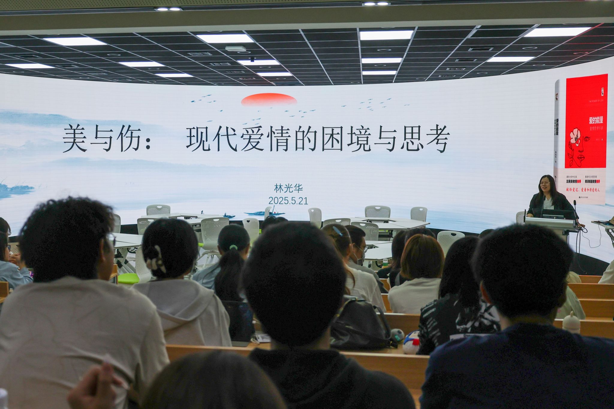 【本站讯】5月21日,中国人民大学国学院副教授、博士生导师林光华做客博雅讲堂第98讲,作题为“美与伤——现代爱情的困境与思考”的专题讲座。讲座由荟萃学院与文法学院联合主办,中国语言文学系副教授王永豪主持。