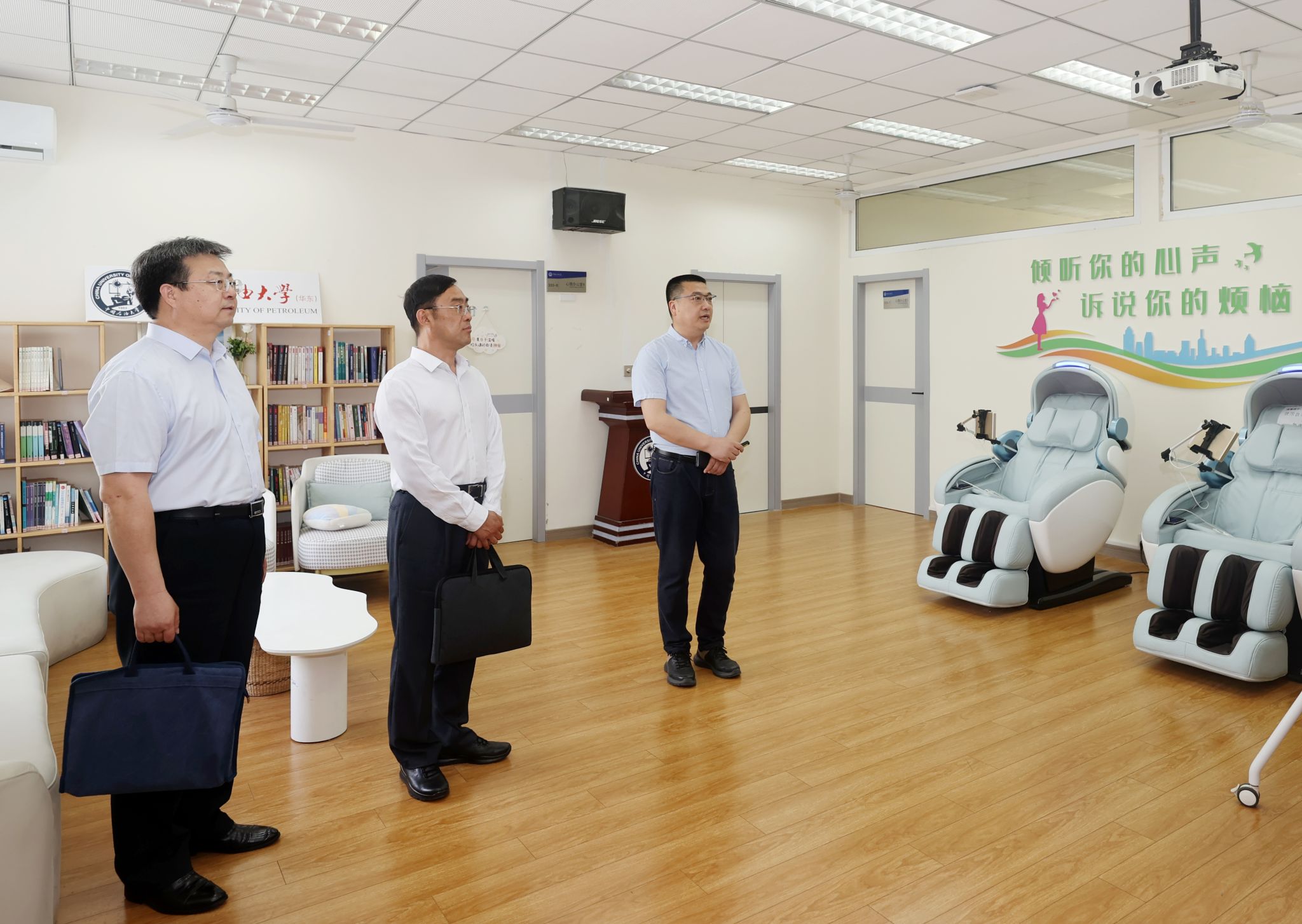 座谈会前,吴强明一行赴一站式学生社区、学生就业指导中心、学生创新实践中心、学生心理健康教育中心开展实地调研,听取相关工作情况介绍并提出意见建议。