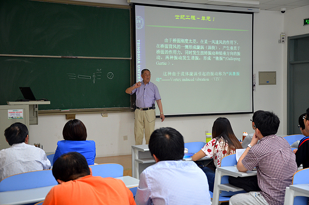 【本站讯】“我们的飞机能造多大,我们的大楼能盖多高,我们的大桥能造多长,我们的火车能跑多快,我们的巨轮能造多巨。”这是清华大学范钦珊教授为我校进行教学公开课“世纪工程”开场时的提问,引起了在场师生的极大兴趣。