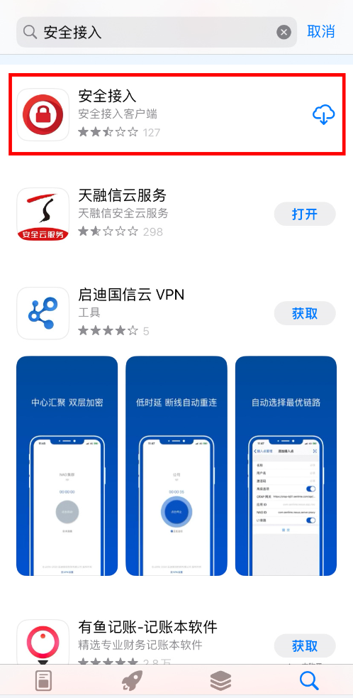 1.下载:打开苹果应用商城(App Store)搜索“安全接入”,点击下载安装;