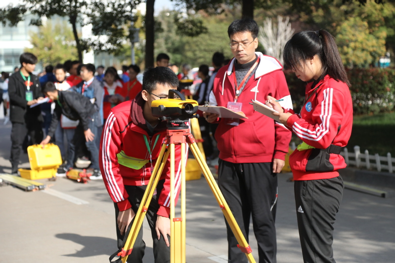 比赛开始,场地内一群群鲜丽的“荧光色”开始奔流。对中整平、盘左盘右,每一个动作争分夺秒;立尺换面、上路测步,每一个环节拼尽全力;报数回报,及时计算,每一个步骤一丝不苟。换站过程,裁判员叮咛嘱咐;计算过程,裁判员全程监督。各支队伍严守比赛规范,拼体能、拼技术、拼战术、拼速度,充分展示了队员们扎实的专业基础、过硬的动手实践能力和临场应变能力。
