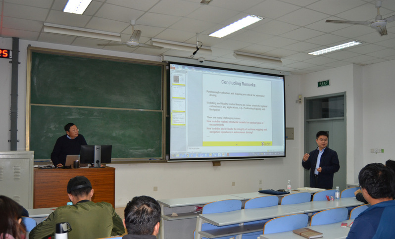 王金岭副教授首先介绍了自动驾驶的发展历程,从上世纪30年代至今,自动驾驶的概念不断推进、具体化。他从简单区域到复杂环境的自动驾驶技术要求展开,介绍了自动驾驶技术对定位精度以及准确性的要求;以民航为切入点,提出了自动驾驶完好性的概念。最后,他提到了两种提高自动驾驶完好性的定位技术,一个是SLAM技术(simultaneous localization and mapping),另一种为PPP(precise point positioning)。报告结束后,贺凯飞副院长对本次报告的内容进行了总结,并向学生介绍了澳大利亚新南威尔士大学和开云电竞投注的合作情况,激励同学们努力学习自己的专业知识。此外,王金岭副教授还针对老师及学生提出的问题进行了详细的回答。本次报告会拓宽了参会学生的思维,使师生们从传统的测绘思维中解放出来,增强了学生对自己专业的信心。