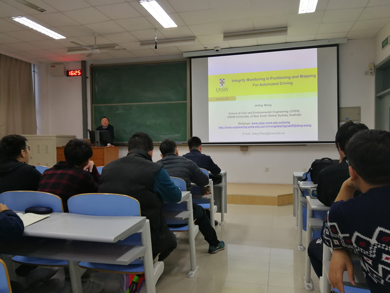11月21日下午,依托科技部2019年度高端外国专家引进计划“海洋综合导航定位理论与方法国际合作研究”项目的支持,澳大利亚新南威尔士大学(University of New South Wales, Australia)王金岭副教授应邀来校进行学术交流,为我院师生做了题为“Integrity Monitoring for Positioning and Mapping in Automated Driving”(自动驾驶中定位和绘图的完好性监测)的学术报告,并与师生进行了热烈的讨论和交流。