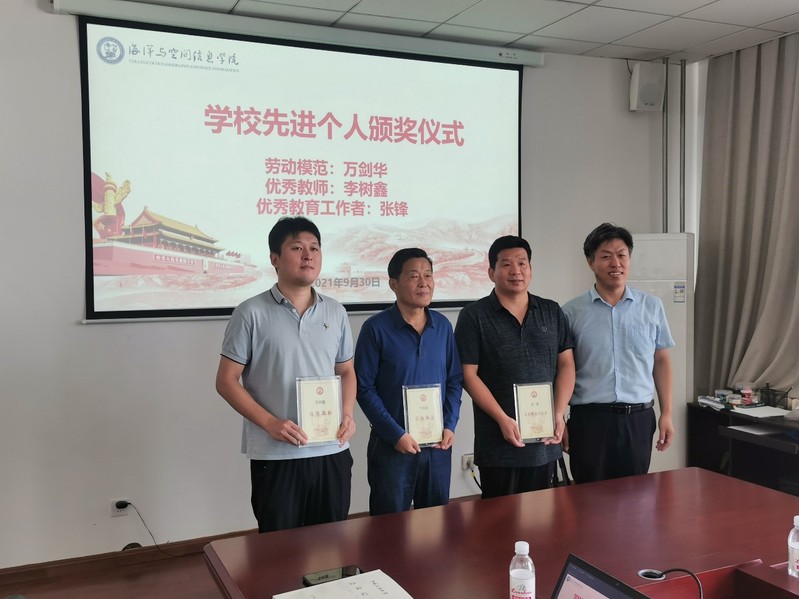学院成立以来,全院教职工积极进取,务实创新,只争朝夕,向海图强,为学院的发展做出了重要贡献,呈现出勇担使命、昂扬向上的精神风貌,三位获奖同志是我院教职工的优秀代表。学院广大教职工要以先进个人为榜样,不忘初心、牢记使命,立足岗位,奋发有为,以实际行动践行“家国同心、艰苦奋斗、惟真惟实、追求卓越”的石大精神,为建设海洋信息学科特色鲜明的一流研究型学院做出新的更大的贡献。