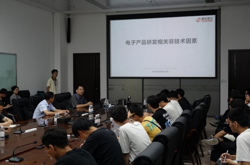 实习伊始,鼎信通讯副总裁、人力资源中心总监赵磊,人力资源中心人才供应部主管谢宛霖,招聘经理张宇等为师生们举行了欢迎仪式。实习期间,鼎信通讯为师生们精心组织了电子产品研发非技术因素讲座、电力电子基础知识讲座、校友座谈、展厅参观、智能工厂认识实践等系列活动。