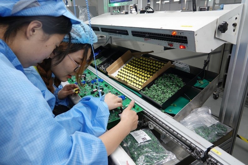 在参观环节,师生们依次参观了展厅、检测中心和智能工厂。在展厅,师生详细了解公司的发展历程、研发体系以及取得的创新成果;通过参观检测中心众多实验室和精密仪器设备,同学们对于产品检测、质量管理等相关流程拥有了更加直观的认识;在智能工厂,师生依次参观模具车间、注塑车间、总装车间电表生产线、PCBA车间。在参观智能工厂的过程中,电力电子产品产线、PCBA产线的工作人员组织同学们学生亲身投入到产线具体生产环节。通过对自动化生产线与手工生产过程的对比,同学们直观地感受到了自动化、智能化给产品生产效率带来的巨大提升。