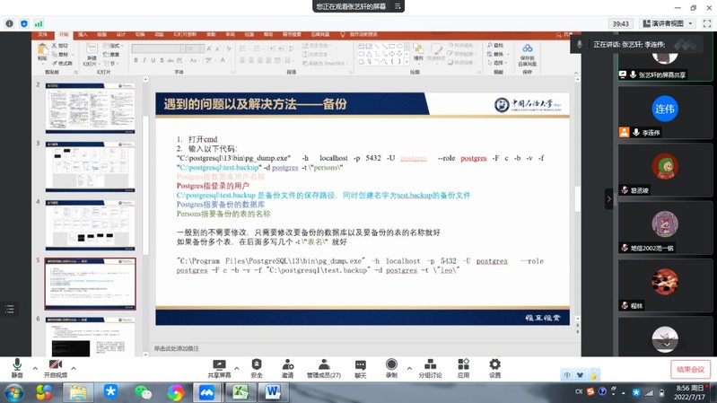 近日,海洋与空间信息学院空间数据库实习受到学生一致好评。受疫情影响,原定在校实习的课程转为居家线上实习。实习从7月12日持续到7月26日,黄丙湖、李连伟两位教师采用上机实践和线上汇报相结合的授课方式进行授课。通过此次学习,学生们不仅巩固了数据库语言的理论知识,还掌握了更深层次和多样化的数据库操作技能。