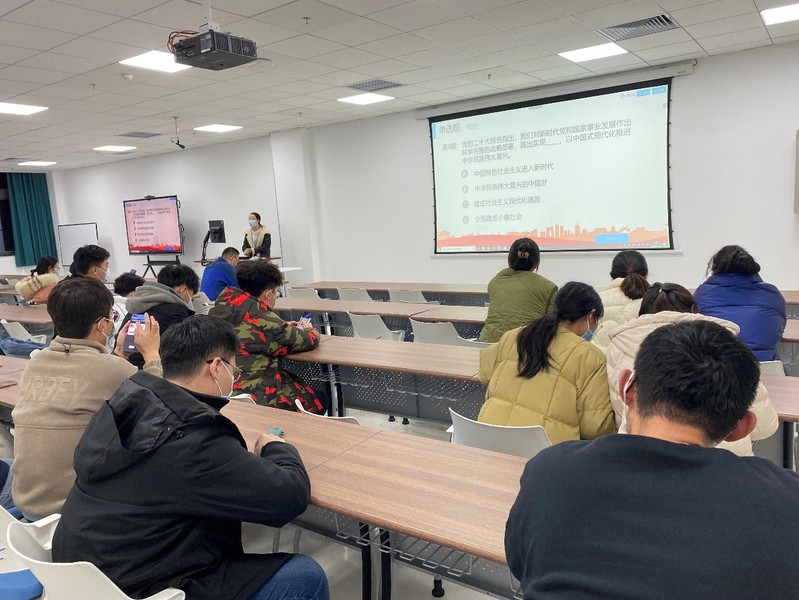 为进一步激发党员同志深入学习党的二十大精神的政治热情,借助“雨课堂”平台开展了“党的二十大知识答题”活动,由线上、线下的支部党员同步作答,并实时反馈支部答题情况,针对支部党员不够熟悉的党的二十大相关知识点也进行了补充讲解,现场气氛活跃,积极作答,在学习党的二十大知识的同时,也充分调动了大家参与组织生活活动的积极性。最后黄倩倩同志表示,学好党的二十大精神要从三个方面开展学习,第一要在学习中深思;第二要在学习中细悟;第三要在学习中力行,希望大家充分发挥党员模范带头作用,打好理论基础。