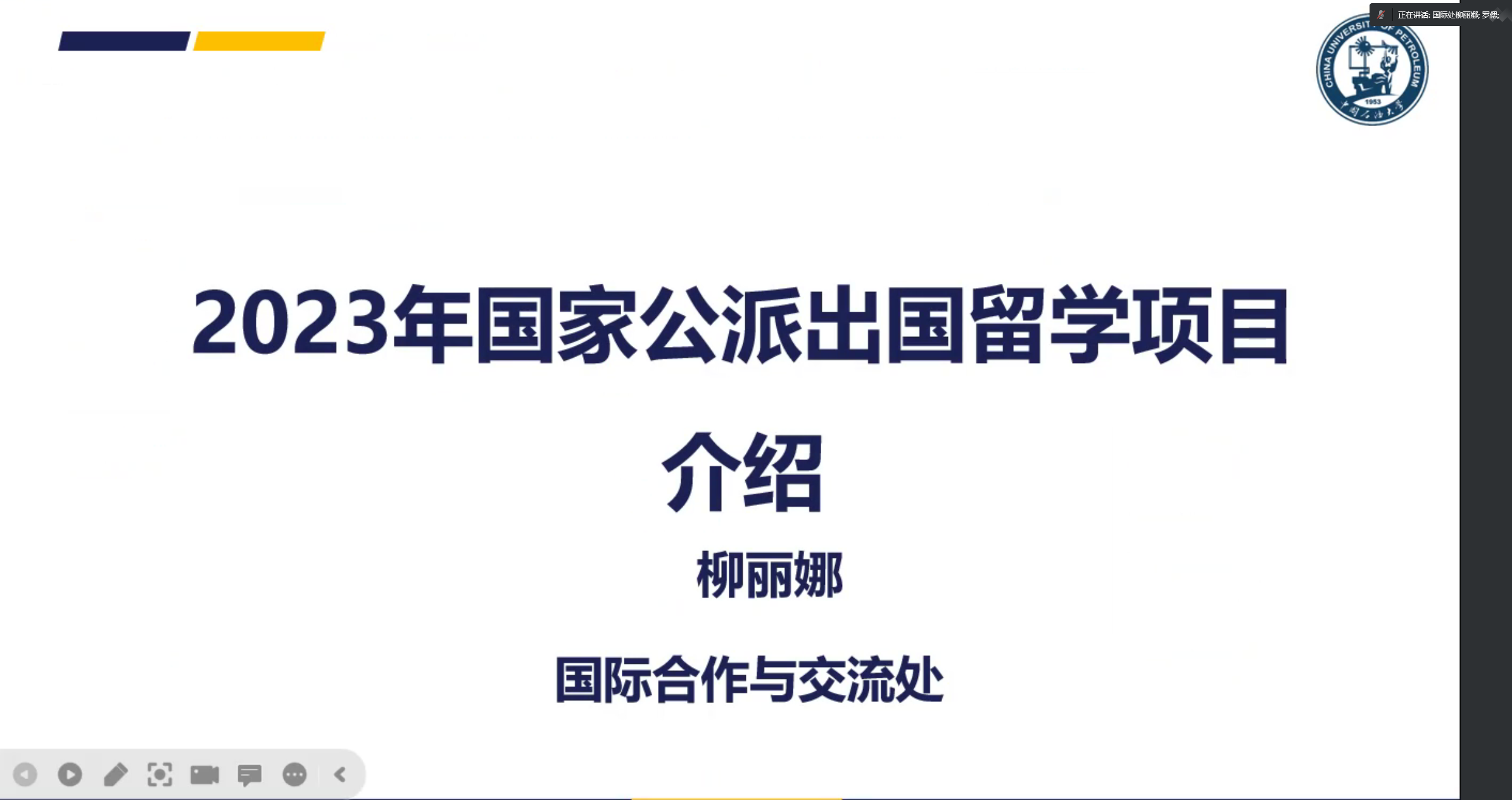为进一步推动海空学院国内外合作培养创新型国际化人才,2023年1月9日上午,海空学院面向全校研究生,采用线上直播的方式举办了2023年国家公派研究生留学项目宣讲会。国际合作与交流处、港澳台事务办公室、国际教育学院柳丽娜老师、海空学院贺凯飞副院长及各系负责外事老师参加,会议由海空学院外事秘书罗偲老师主持。