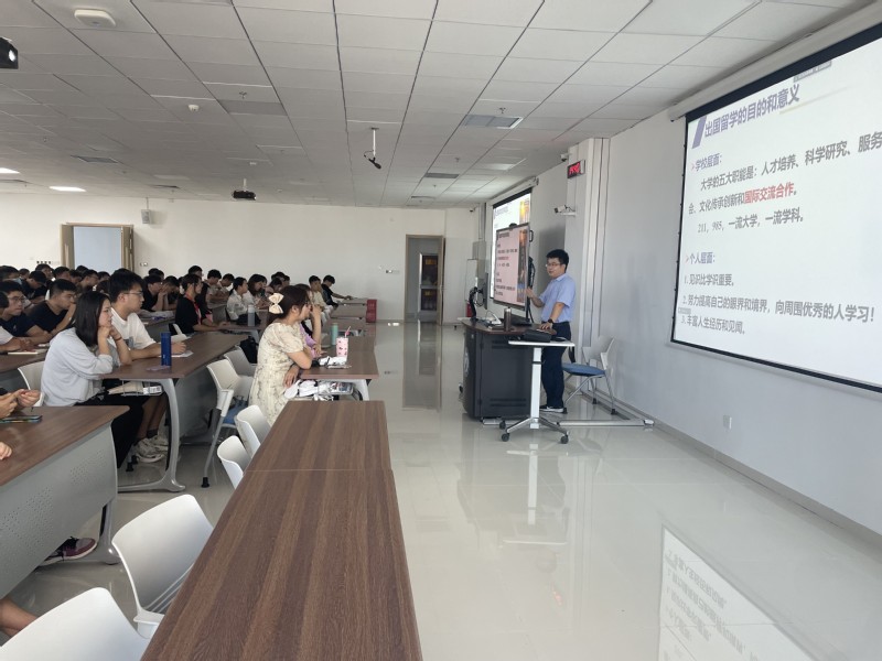 首先,贺院长以自身为例,通过讲述自己的留学经历,让学生们意识到出国留学的目的和意义。贺院长强调:出国留学是一个很好的拓展国际视野、提升跨文化交流能力以及获取更广阔的学术资源的机会。