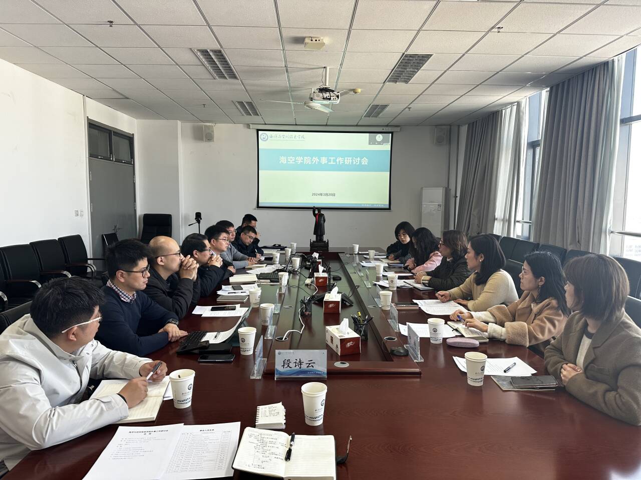 为提升学院外事工作的水平和高度,落实学校新学期外事工作会议精神,海空学院于3月20日上午在工科楼E1504召开外事工作研讨会,全面总结2023年学院外事工作,研讨部署新学期外事工作。国际开云电竞管网官网入口处副处长王娟及各科室和项目负责人,海空学院副院长崔学荣、贺凯飞,党委副书记于华帅,以及各系、学科、学生外事工作负责教师参加了研讨会。