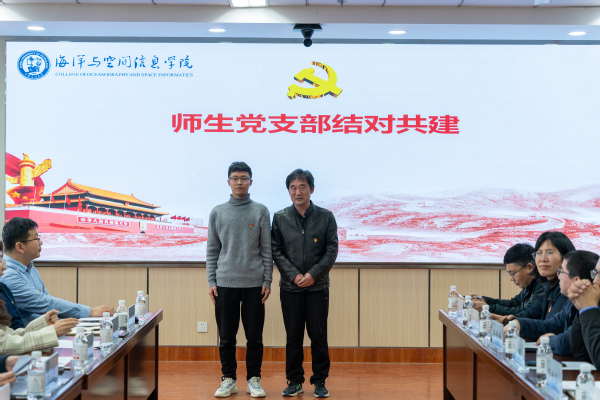 学院党委副书记于华帅代表学院党委宣读师生党支部结对共建文件,三个教职工党支部与本科毕业年级四个学生党支部结对共建。