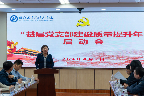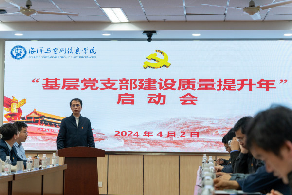 4月2日下午,海洋与空间信息学院举行“基层党支部建设质量提升年”启动会。海空学院师生党支部书记、教工党支部委员,研究生党支部指导教师,学院党委委员、辅导员、党委秘书等参加会议。学校党委组织部副部长李振、党委学生工作部(武装部)副部长孙鹏燕出席会议。会议由海空学院党委书记郭文主持。