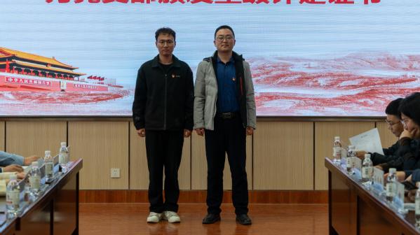 党委组织部副部长李振为各党支部颁发星级评定证书