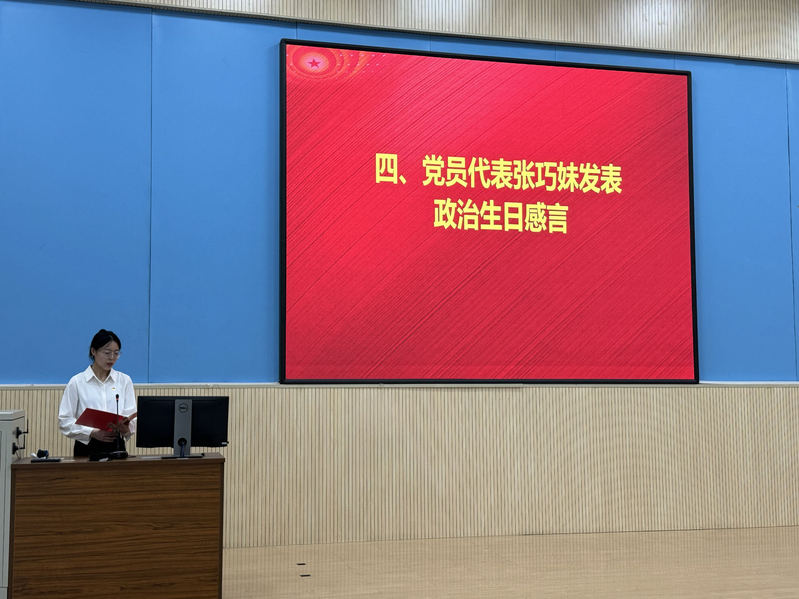 党员代表张巧妹发表了政治生日感言。她回顾了自己成为党员以来的成长历程,并号召大家向先锋学习,勇敢追求目标,为实现共产主义事业努力奋斗。党员代表刘然发表了出征宣言,郑重承诺在未来学习和工作中坚持党员身份,为党和人民创造更大的价值。