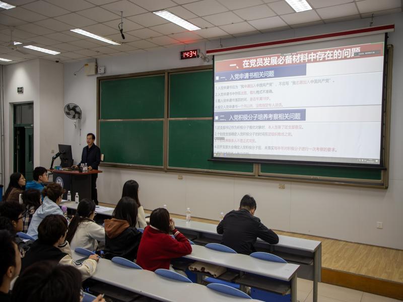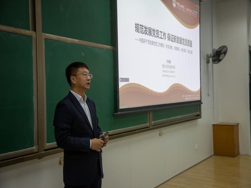 学院党委副书记于华帅讲解发展党员工作蔡文奇摄