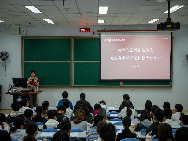 为加强基层学生党建工作,提高支部书记等业务水平,提升发展党员工作质量,进一步发挥学生党建育人作用,10月27日,海洋与空间信息学院举办党支部书记及党员骨干培训班。此次培训由学院党委副书记于华帅、学院党委专职组织员杨武成以及学院党委秘书宫啸坤讲授课程,全体学生党支部书记及党员骨干参会。