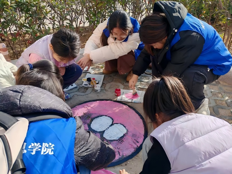热烈的创作氛围也牵动了社区工作者的参与热情,他们主动加入洗笔、补色的行列,校社同频的协作,让“艺暖社区”的温度在社区蔓延。当最后一笔色彩落定,此次活动在欢声笑语中圆满落幕。本次公益实践,既是一次“美育下沉基层”的生动落地,亦是青年践行社会服务的鲜活实践。