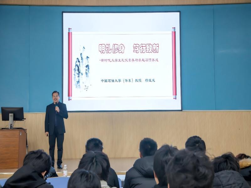 杨武成以“明礼修身 笃行致新”为主题,围绕大学生礼仪素养提升展开专题讲座。讲座中,杨武成解析 “敬人、敬己、敬物、敬环境”的内涵,强调礼仪在协调人际关系、内强个人素质、塑造良好形象三大核心作用,并结合大学生活实际,从见面礼、师生交往、同学相处、公共礼仪五大关键领域展开详细讲解。通过案例分析与互动问答,将专业礼仪知识转化为可落地的实践方法,让新生深刻认识到礼仪素养对学业成长与未来发展的重要意义。