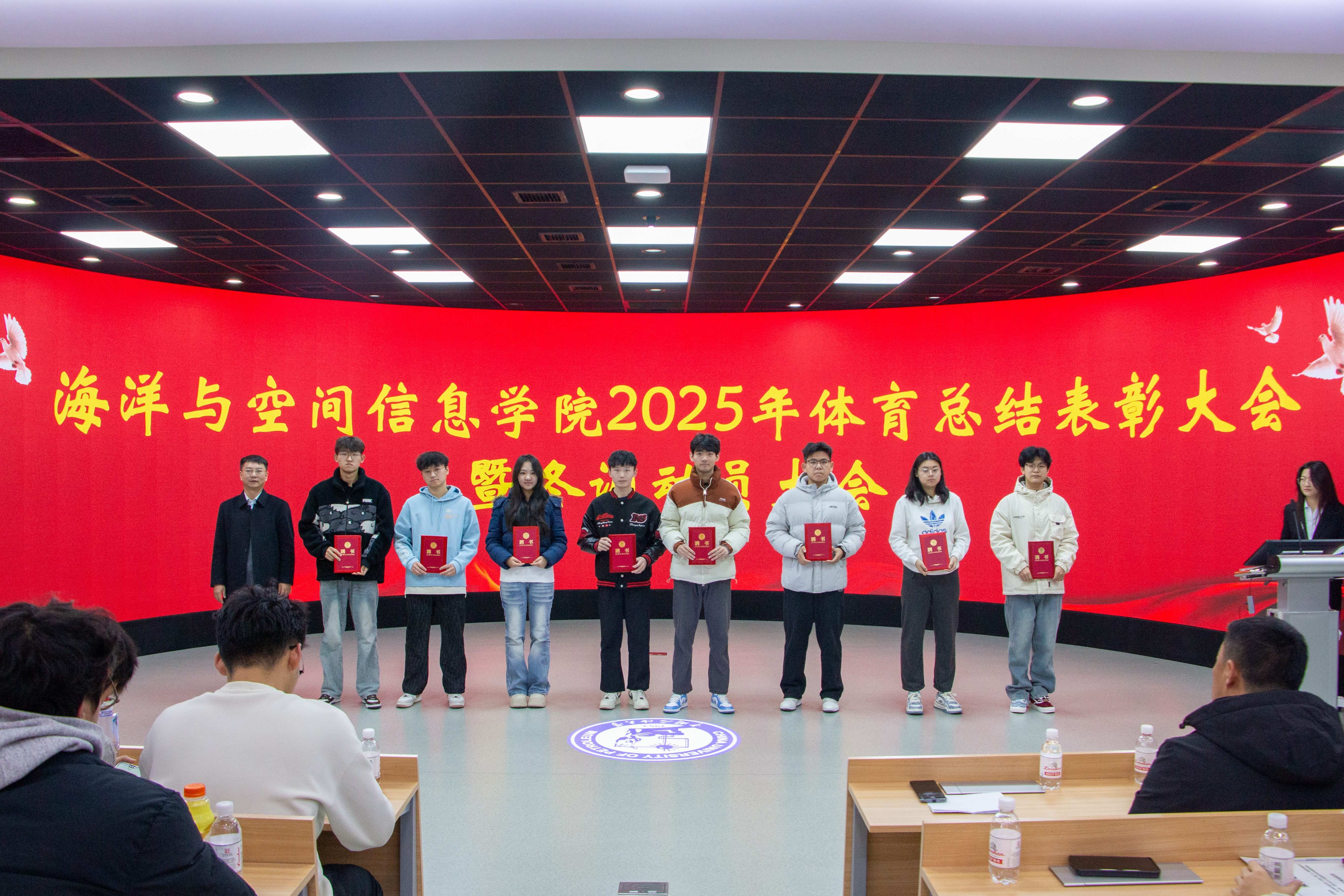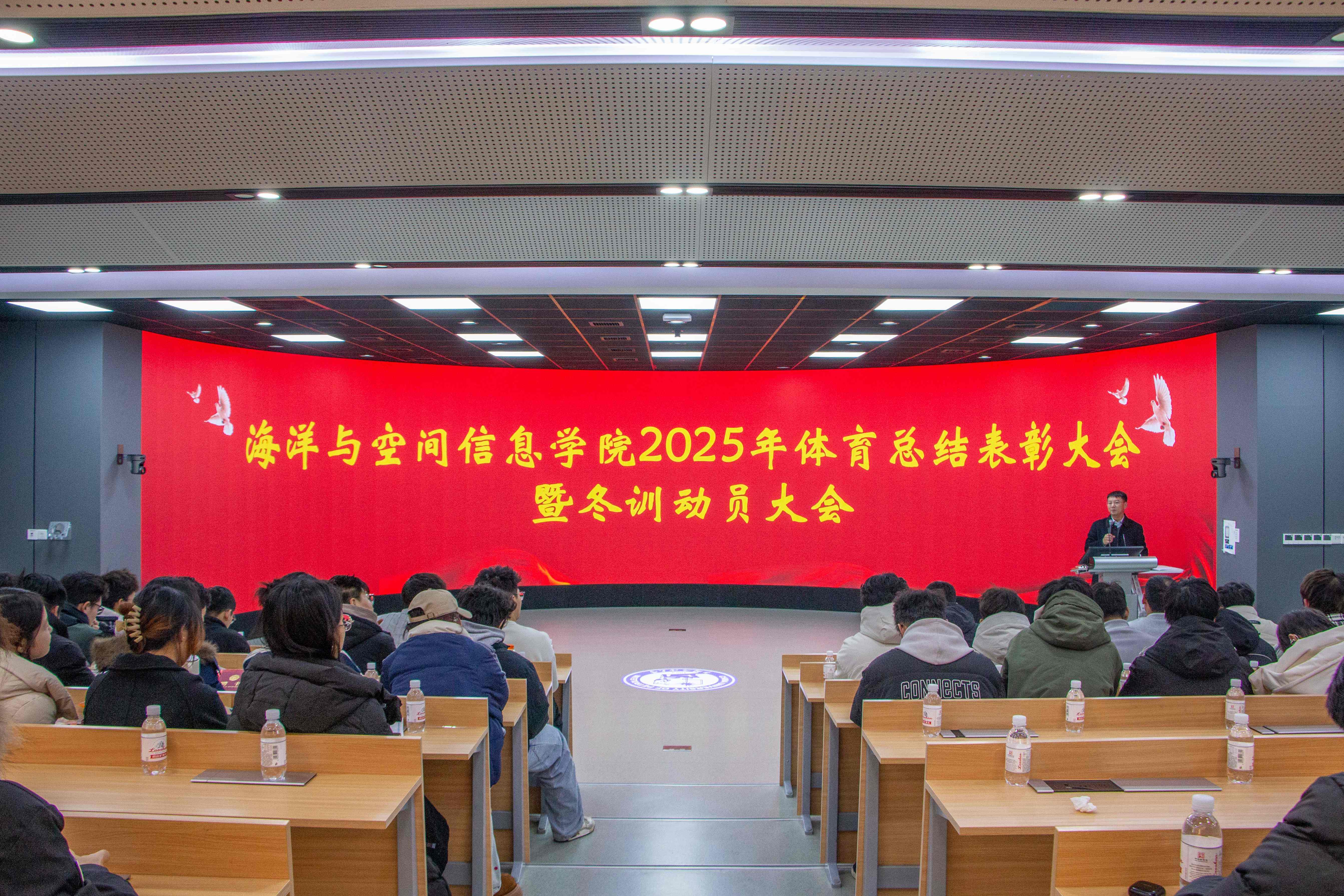 2025年12月14日上午,海洋与空间信息学院2025年体育总结表彰暨冬训动员大会在南教209顺利召开。学院党委副书记于华帅、体育指导总教练史海鹏、团委书记段诗云、体育工作分管老师黄书涛、辅导员代表汪海,以及各运动队成员、体育发展指导中心全体成员齐聚一堂,共同回顾成果、表彰先进、部署冬训。