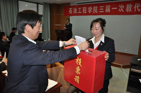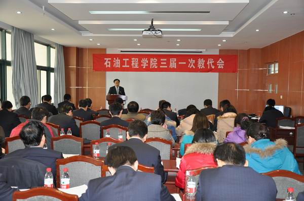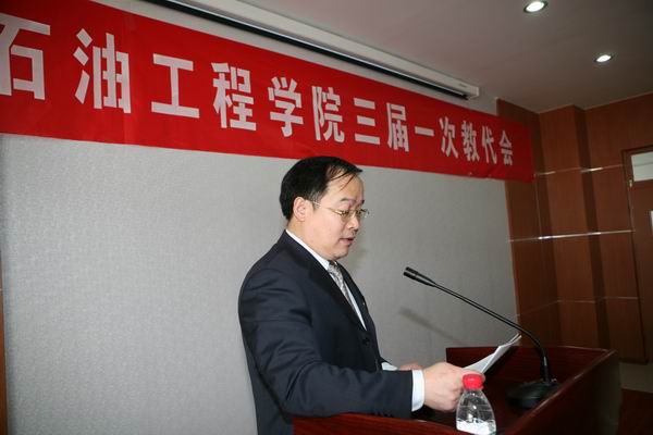 2011年1月7―8日,石油工程学院在院学术报告厅召开了第三届一次教职工代表大会。62名代表参加会议,代表们以高度的责任感、使命感,为学院建设发展建言献策,共建和谐家园,同谱学院新篇。校工会刘咏梅副主席代表学校工会致贺词。