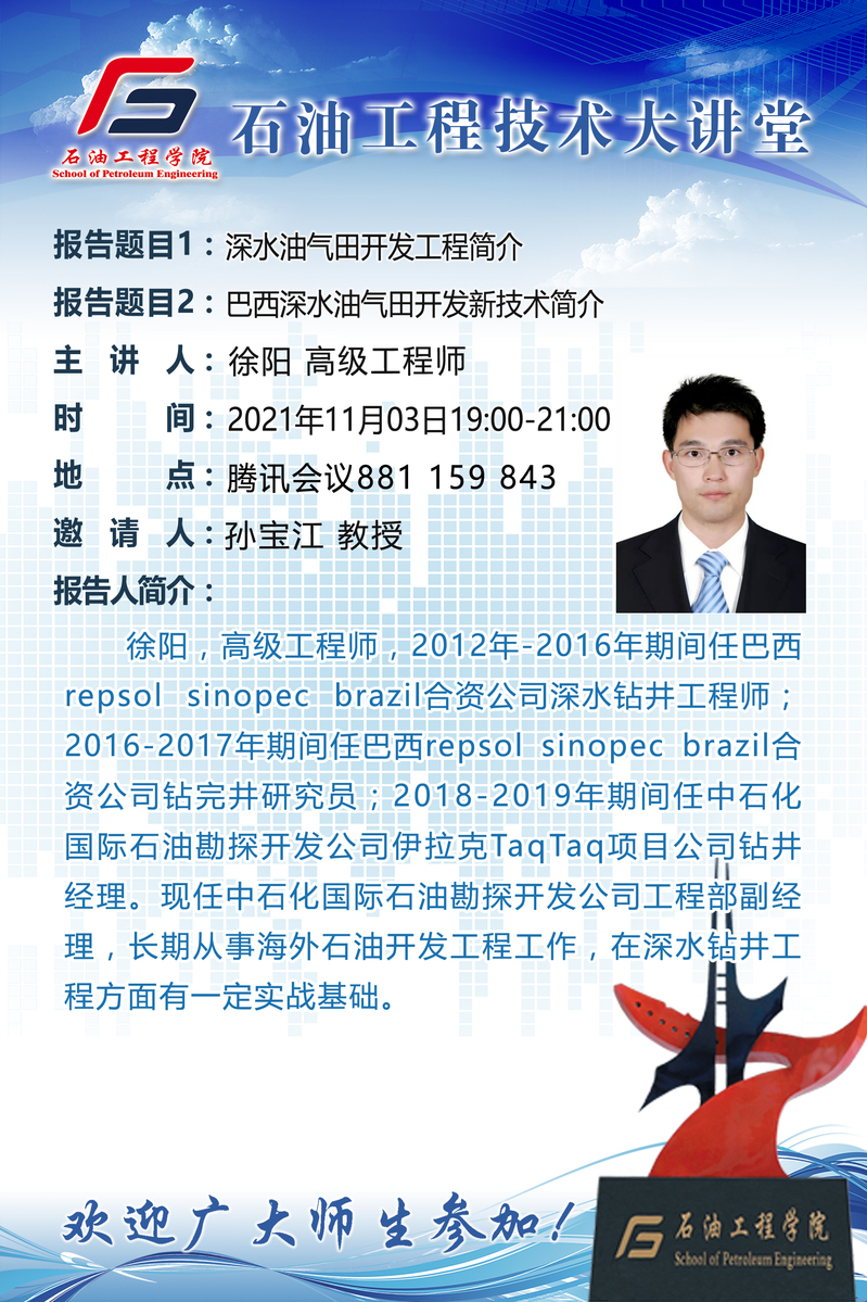 【石油工程技术大讲堂(第37期)】徐阳高级工程师学术报告