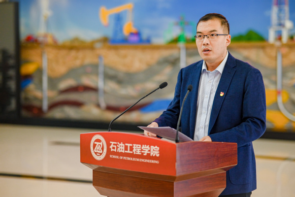 油气田化学研究所所长赵明伟教授作为新晋导师代表发言。他从毕业求职阶段导师对自己的影响谈起,明确教书育人是教师的首要责任,作为导师,不仅要指导学生的学业、科研,还要积极关注学生的身心健康、职业发展;不仅要培养学生刻苦钻研的科研精神,更要培养学生具备完善的人格,高尚的的品格。