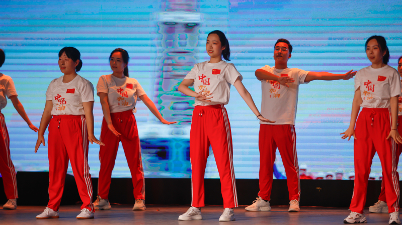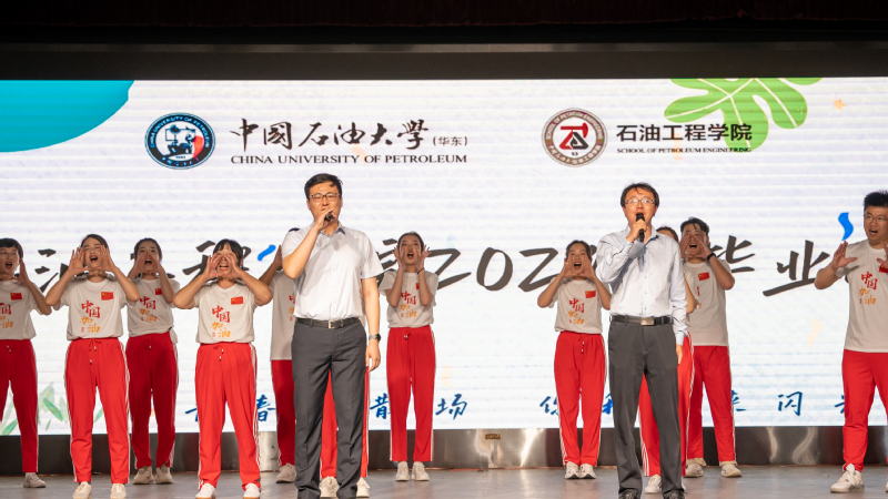 舞蹈结束后,2024届毕业生辅导员李昀泽、周晓东为毕业生送上祝福和期待,“愿你们家国同心,播撒能源之火!愿你们历尽千帆,归来仍是少年!”全场齐声高喊,气氛十分热烈。