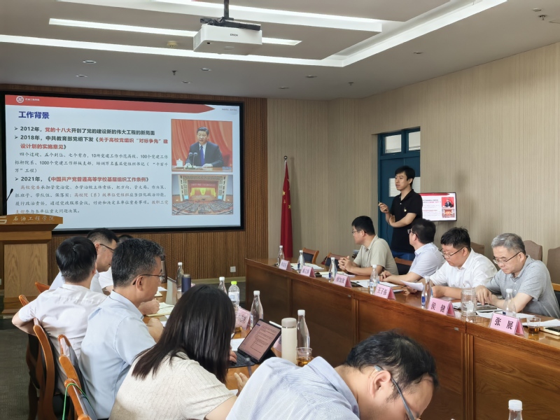 在党建业务交流环节,张展、沙志彬分别汇报了双方单位的基本情况和党建工作经验。杨永飞汇报了学院天然气水合物研究相关情况,工程中心党总支委员于彦江汇报了海域天然气水合物试采工程进展及攻关需求。双方与会人员围绕党建工作、科研业务进行了深入交流研讨。会后,参会人员共同参观了石油工程学院“向党心·石油魂”全国先进基层党组织党建教育基地及学院天然气水合物相关科研实验室。