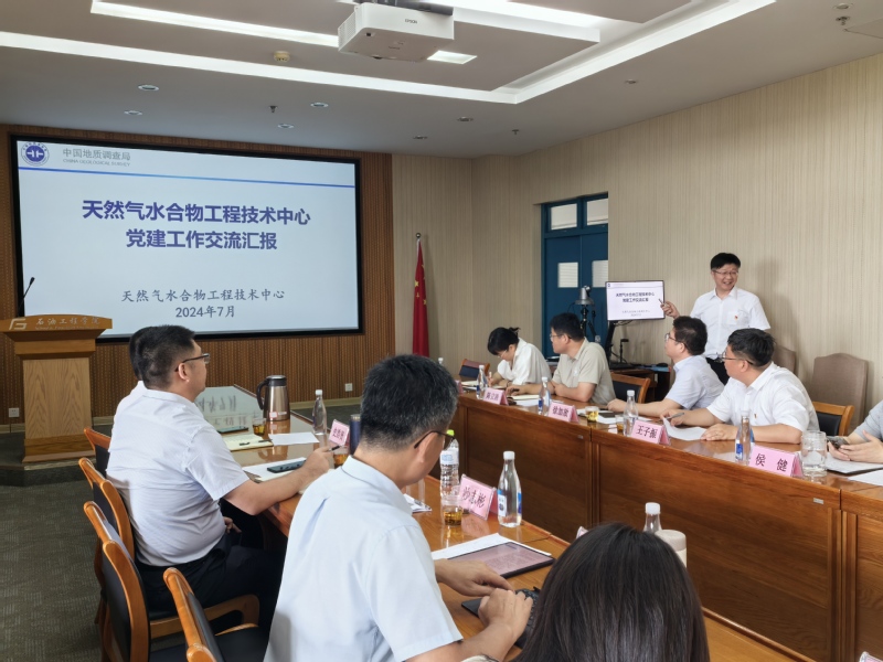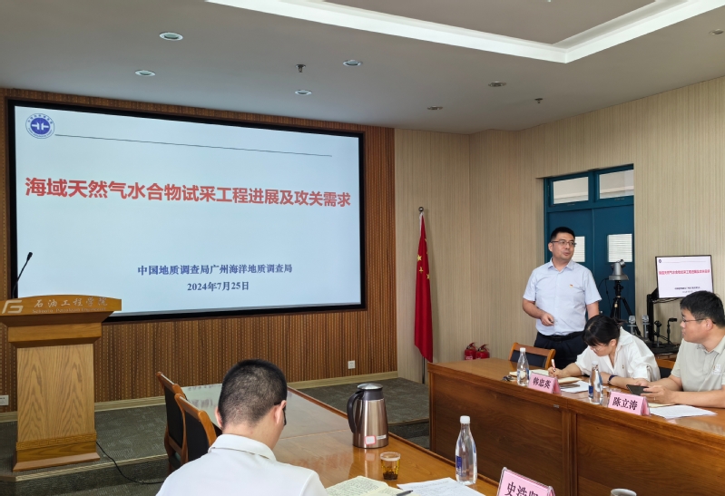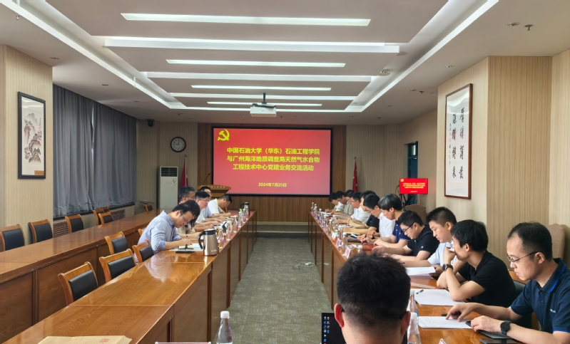【本站讯】7月25日,广州海洋地质调查局天然气水合物工程技术中心党总支(以下简称“工程中心党总支”)一行来院,共同开展“一融双高”党建业务交流活动。广州海洋地质调查局副局长谢文卫、党总支书记沙志彬及相关同志,学院院长侯健、党委书记张展、副院长杨永飞以及学院从事天然气水合物相关研究的教师参加了本次活动。