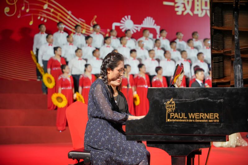 整场演出集朗诵、领唱、齐唱、轮唱、钢琴、和声、道具等于一体,表演形式丰富多彩,歌曲编排兼具故事性和艺术性,教职工们对歌曲内涵理解和表演到位,与指挥和钢琴伴奏配合默契,赢得了在场的所有观众与评委阵阵欢呼和掌声。最终,我院以9.63的高分荣获一等奖。这是继2017年、2019年、2021年以来,我院连续第四次荣获教职工合唱比赛一等奖,是我院凝心聚力推进“双一流”建设的生动体现。