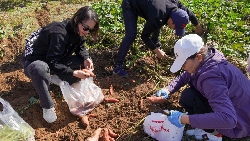 在采摘园,老师们积极参与劳动实践,亲手摘水果,刨地瓜,捡花生,忙得不亦乐乎。在体验的过程中感悟农民的艰辛,在劳动的汗水中感受收获的快乐,更加珍惜劳动果实,恒念物力维艰。在绿色硅谷,老师们了解了无土栽培技术,了解传统农业与现代科技农业的差异,感受到现代科技在农业生产中的重要作用。
