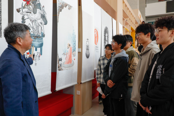 作为徐氏传拓研习馆创始人,徐伟以金石传拓的时空对话为切入点,通过珍贵的拓片文物,系统地阐释了非遗技艺的历史脉络与文化价值。传拓不仅是技术活,更是与历史对话的过程。他手举拓器现场演示拓印技法,展示从文物拓片创作历程,让学生们直观感受纸寿千年的文化魅力。徐伟赠给现场学生非遗传拓作品,并寄语青年学子:非遗传承需要守正创新,希望同学们既能成为传统文化的守护者,也能成为时代精神的创作者。”