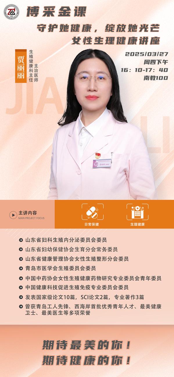 【本站讯】为切实提升我校女性对自身生理健康的科学认知,营造关爱女性健康的校园氛围,2025年3月27日下午,石油工程学院学生会于南教100承办思美节校级活动,为同学们带来了一堂意义非凡的博采书院·金课——“守护她健康,绽放她光芒”女性生理健康专题。本次活动邀请到西海岸新区妇幼保健计划生育服务中心生殖健康科主任贾丽丽医生作为主讲嘉宾,我校女生积极参与。