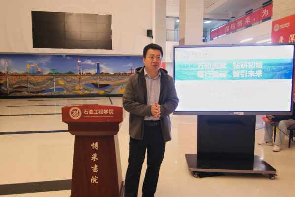 【本站讯】为帮助我院学生深入了解我国钻凿万米深井的艰辛历程,4月13日,石油工程学院学生会于工科楼B座博采书院顺利举办第173期“深钻万米,油气未来”——与教授有约活动。本次活动邀请刘永旺教授为参会学生讲解万米油井的发展与突破,并分享学习与科研经验。