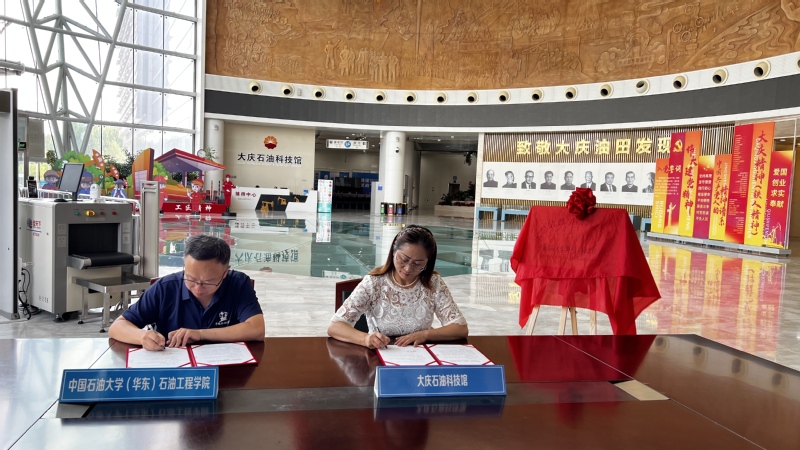 【本站讯】为深入贯彻落实习近平总书记关于建设“大思政课”的重要指示批示精神,按照学校党委关于全面推进“大思政课”建设的部署要求,7月15日,石油工程学院与大庆石油科技馆“大思政课”实践教育基地签约挂牌仪式顺利举行。贾寒教授代表学院与孙桂兰馆长签署共建协议并为基地揭牌。