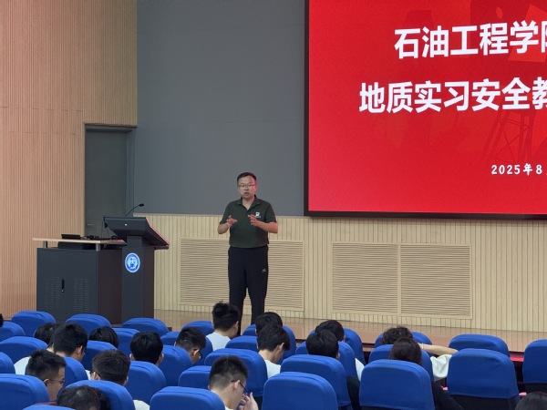 【本站讯】为了提高学生在实习中的安全防范意识,度过一个安全而有意义的实习,8月21日,石油工程学院2023级本科生在南教100教室召开地质实习动员暨安全教育大会,会议由副院长贾寒主持,学院参与第二批地质实习的全体学生参会。