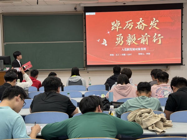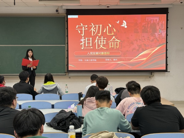 【本站讯】根据我校 2025 年下半年发展党员工作部署要求,10 月 14 日,石油工程学院 2022 级本科生于南教 119 教室举行拟发展对象答辩会。经团支部推优、资格审查,41 名入党积极分子参与答辩,辅导员王静、徐新杰,辅导员助理及年级学生党员共 31 人共同担任评委。