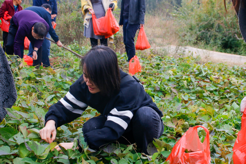 午后,活动进入秋日丰收体验环节。在采摘园内,老师们亲手摘取苹果、葡萄,刨挖地瓜,在愉快的劳动中体验农事的艰辛与收获的喜悦。这一过程让老师们更加深刻地理解了“半丝半缕,恒念物力维艰”的内涵,有助于引导大家进一步崇尚劳动、尊重劳动、珍惜物资。